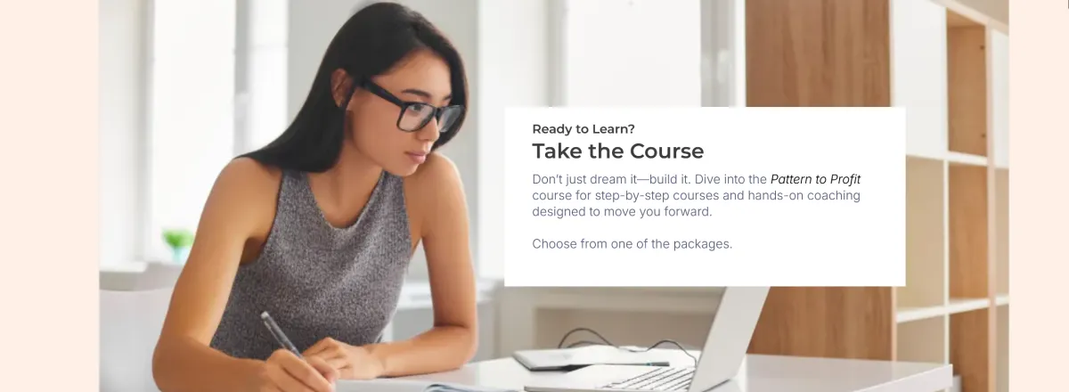 I've never launched a product or worked with manufacturers before. Pattern to Profit walks you step-by-step through every part of brand creation, from idea to launch.